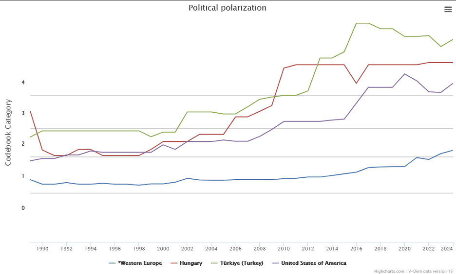 Figure 1: Political Polarization: Hungary, Turkey, United States, Western Europe
